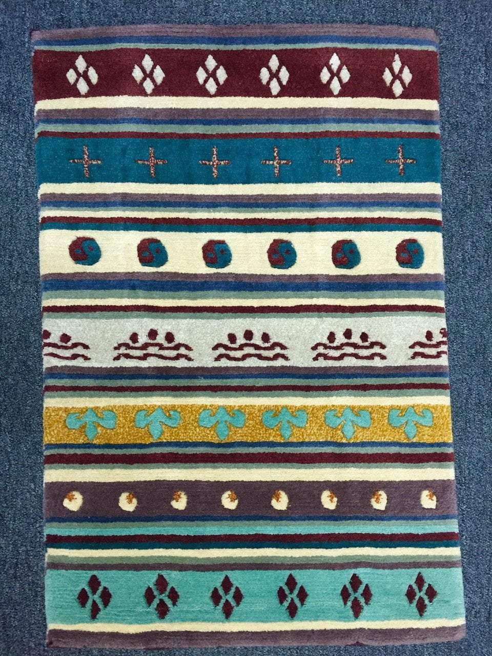 These rugs are designed in the style of a Tibetan apron or Chuba. We love this traditional style and have many colors and sizes available. Handmade in Nepal 2 by 3 feet 60 knots per square inch