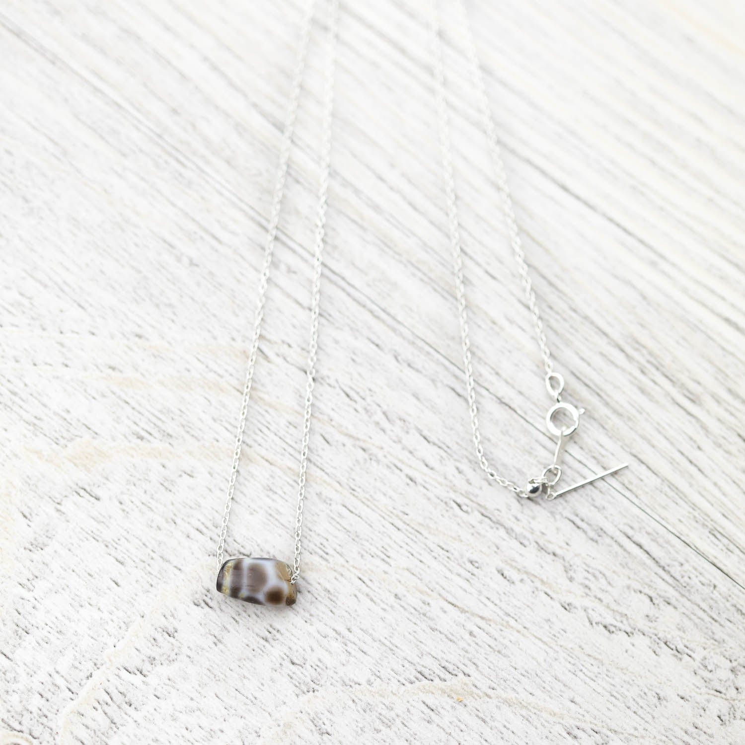 Dzi beads are believed to bring protection and prosperity to the wearer.  The Longevity Dzi features a dark tortoise shell pattern and is also referred to as a "Turtle Back" Dzi.  This design represents a long and happy life.  It is known to improve health and healing while protecting from sickness and negativity.
