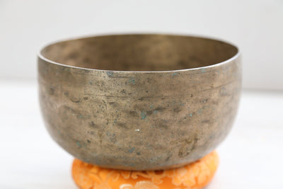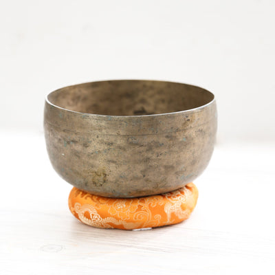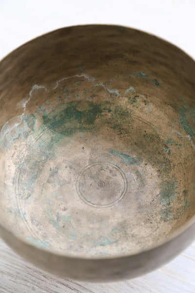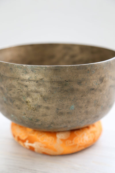 Each time we're able to get a small collection of these bowls is exciting as they are exceptional. Antique Tibetan singing bowls are highly sought after for their remarkable quality of sound, rich tones, and unique physical characteristics. Every handmade mark tells a story of the bowls history! In your hands, we know that these bowls will continue to be a lifetime heirloom, telling their story through their unique markings and golden tones.