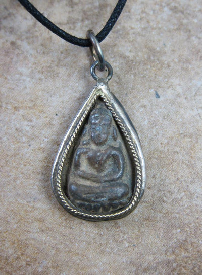 These very cool thai amulets are wrapped in a metal frame. Each thai amulet is handmade by monks to raise funds for their Wat.