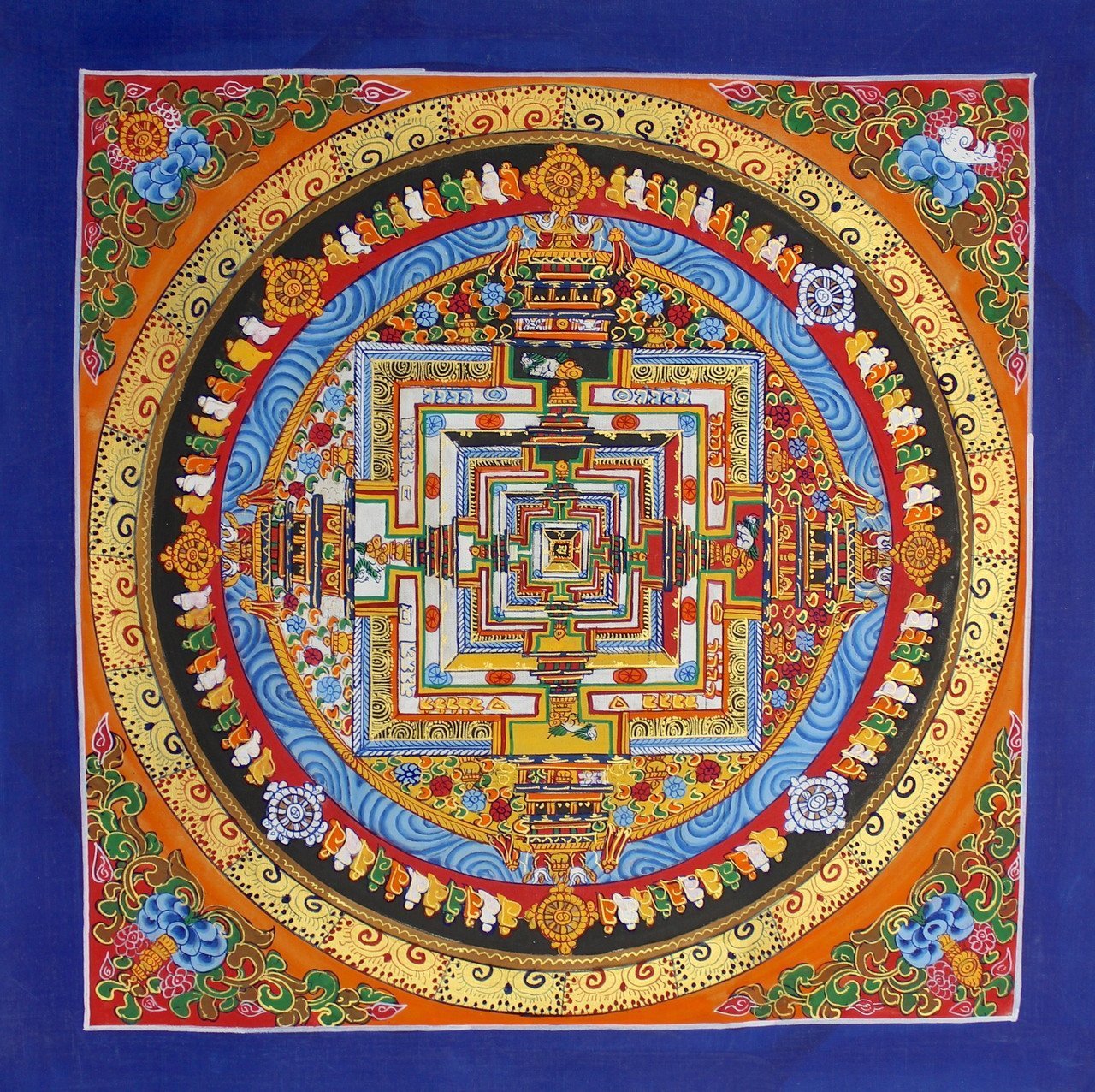 This unframed thangka is ready for western style framing. We have a number of mandala thangkas framed in western frames in our home and they look truly amazing matted with two colors and a dark wood or gold frame.