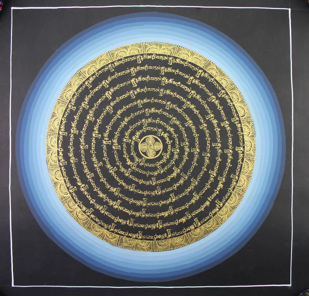 hand painted with gold and hand ground paints, this 'cosmos' mandala is just in from kathmandu Nepal.