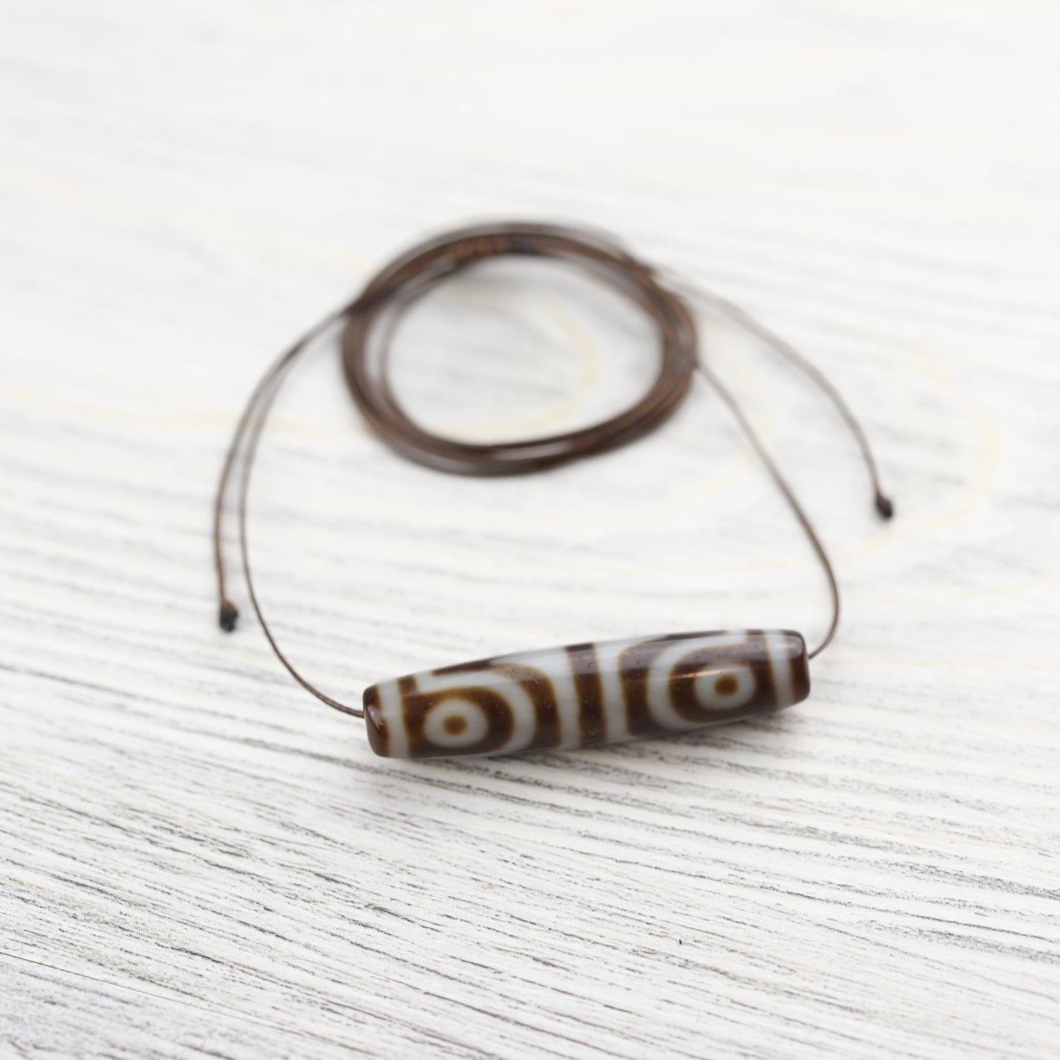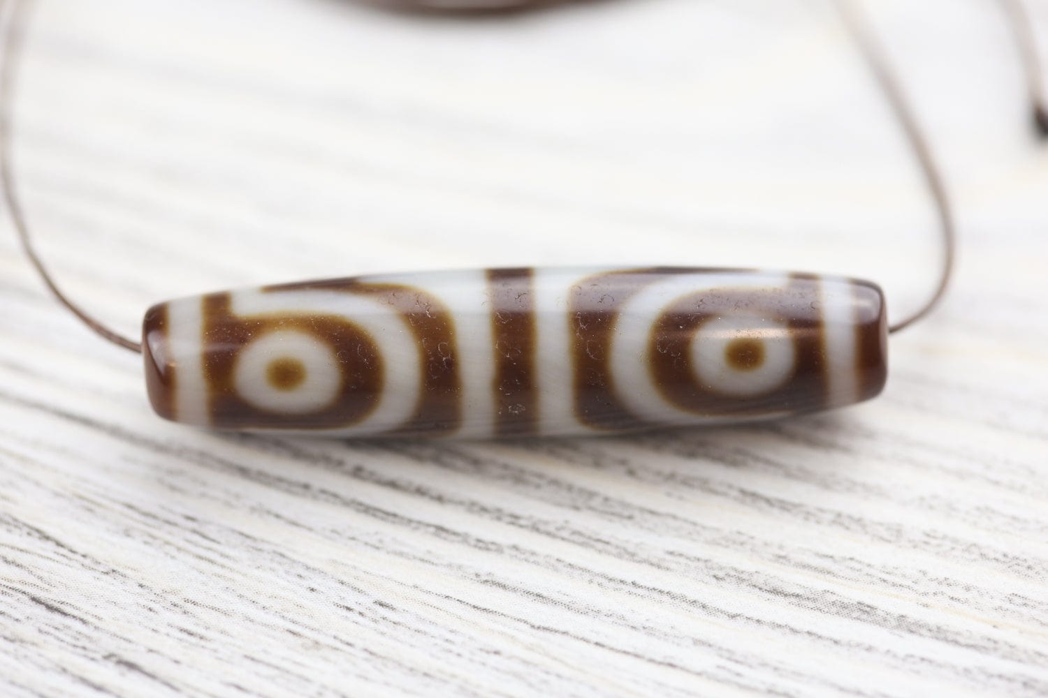 This is the first Four-Eye Dzi we've ever had in our collection! This design helps to overcome negative forces and thoughts, clearing obstacles in your path. The Four-Eye Dzi brings good fortune and increases longevity.