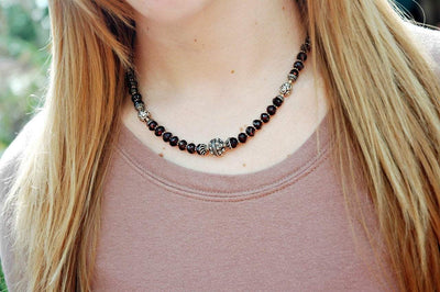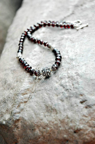 Hand made in Kathmandu Nepal. Faceted Garnet and Sterling Silver Necklace.