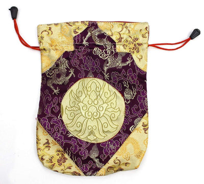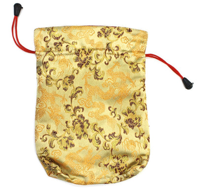 A favorite mala/jewelry bag! Spacious enough for a mala, phone, wallet or keys, this bag can be used as a small purse. Made of golden silk with polyester lining.