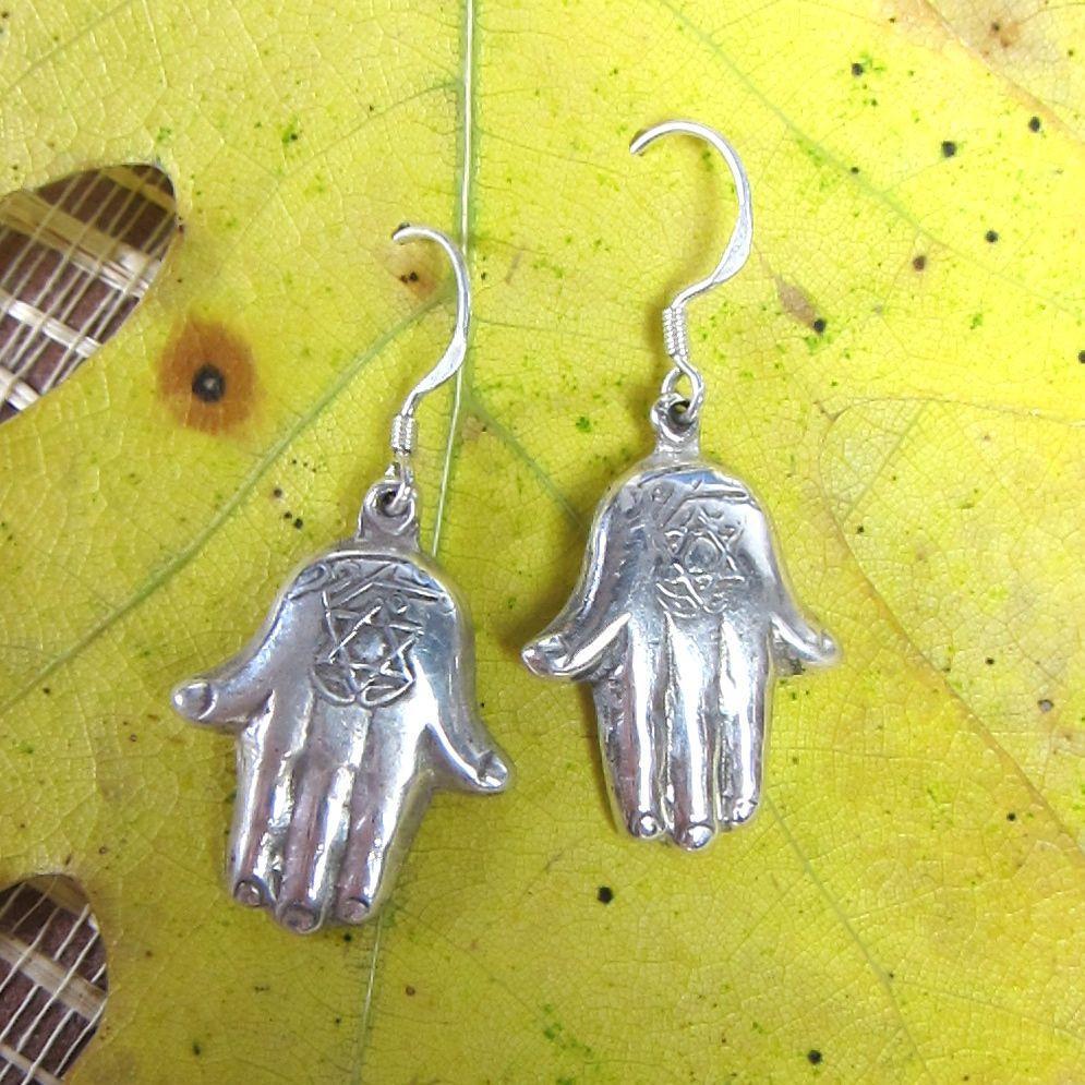 These outstanding earrings are hand made in Nepal and feature the hindu, jewish and muslim sign of peace and goodwill.