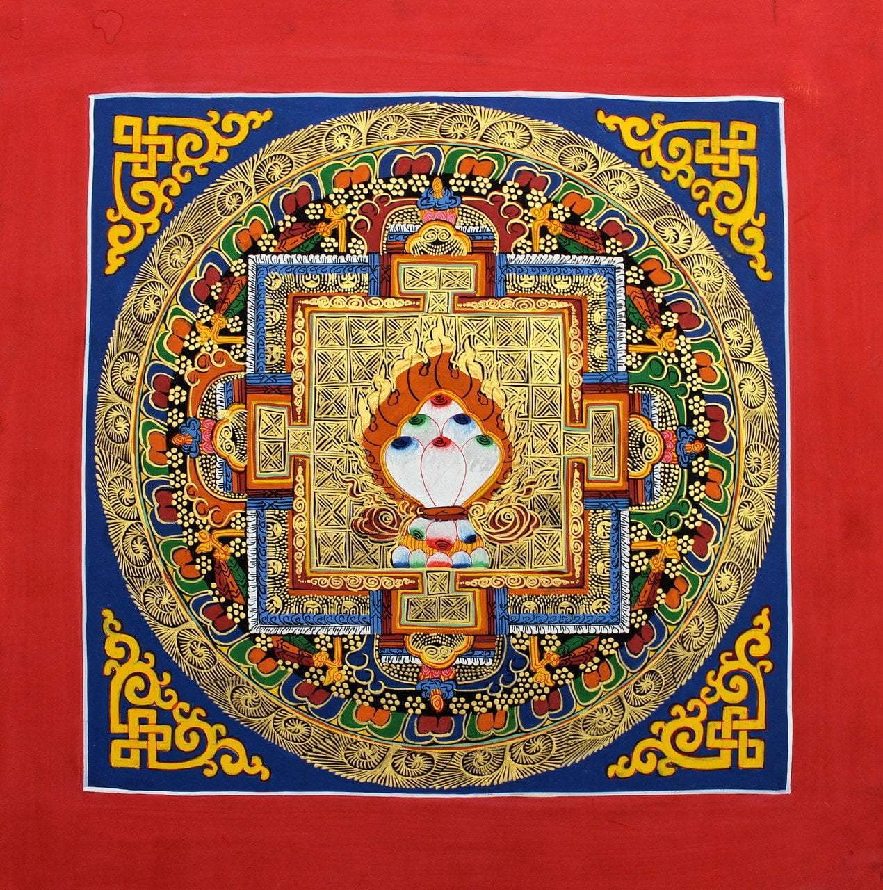 This unframed thangka is ready for western style framing. We have a number of mandala thangkas framed in western frames in our home and they look truly amazing matted with two colors and a dark wood or gold frame.