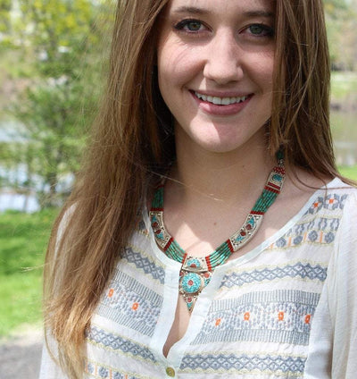 This is an amazing Tibetan necklace made by Karma Dolma in Nepal. 5 strands of turquoise string vintage Tibetan beads together (bead colors vary slightly on this stunning necklace)