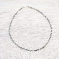 Labradorite is a stone of the Throat Chakra, believed to open the wearer up to their natural intuition and creativity. Its beauty and layered color comes from the thousands of years of mineral plates sliding together, piling on top of each other to create the many lines and veins of colors deep into the stone.