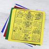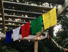 Set includes 5 flags that measure approximately 14 by 13 inches. Full strand measures about 6 feet long. Made of 100% cotton.