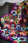 • A cozy companion that transforms any space, you will love our best-selling and customer favorite hand-crocheted woolen blanket from Nepal. With its nostalgic purple base and vibrant honeycomb stitching, it captures the warmth and charm of vintage handmade blankets—like the one lovingly draped over the couch in the home you grew up in.