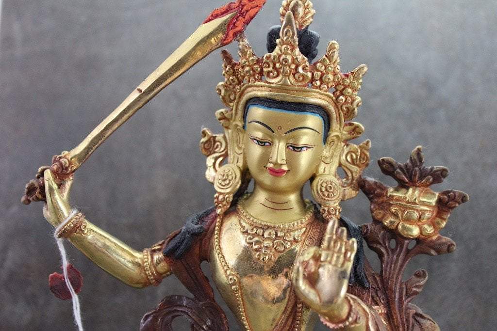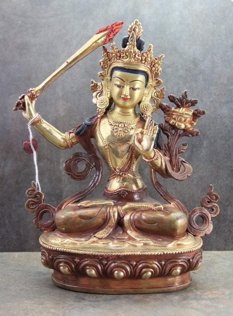 This statue is finely detailed and much of the body and lotus is gilded with gold plating. The face is hand painted in Nepal and comes wrapped for protection.