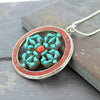 Jaw droppingly beautiful, hand carved, hand inlaid sterling silver, Coral and Turquoise. We were able to get a few more of these amazing pendants.