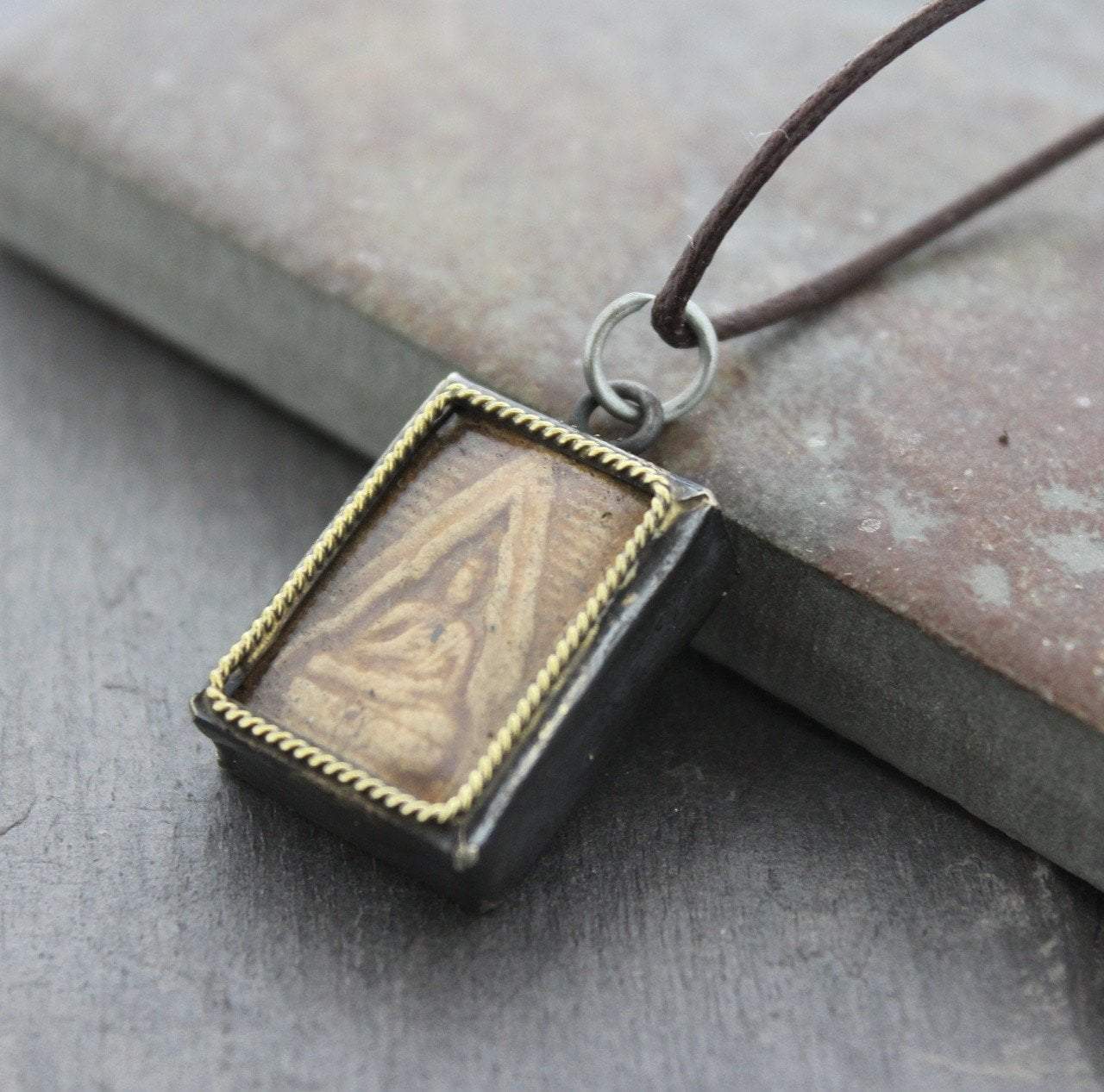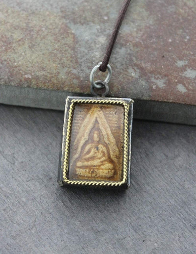 An outstanding Buddha amulet from Thailand. Handmade clay amulet made by monks in Bangkok.