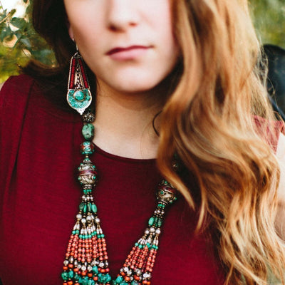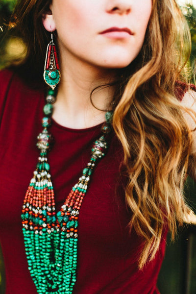 These earrings are lightweight despite their large size.  Each one is handmade by Tibetan artisans in Nepal.