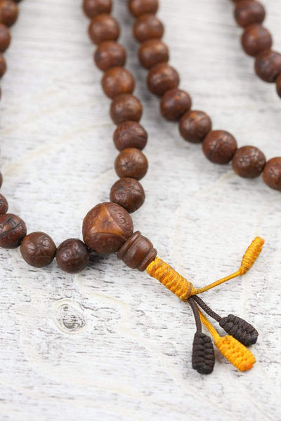 On their trip to Nepal in October 2019, DharmaShop owners, Christy and Sander Cohen were walking a kora around the Boudhanath stupa when they saw an individual seller with a variety of bodhi seed malas. As they began talking with the seller, monks from the nearby monastery came by and they discussed the beautiful quality of the beads. We were able to find the same seller and source a handful of truly incredible antique bodhi seed malas from him once again!