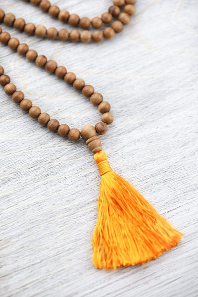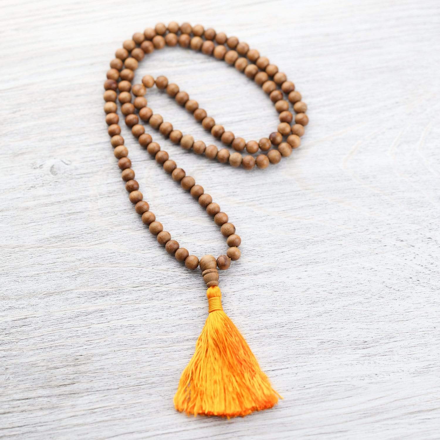 Mala measures approximately 29 inches around. Tassel is 3.5 inches long. Beads are 8-9mm. Made in Nepal.