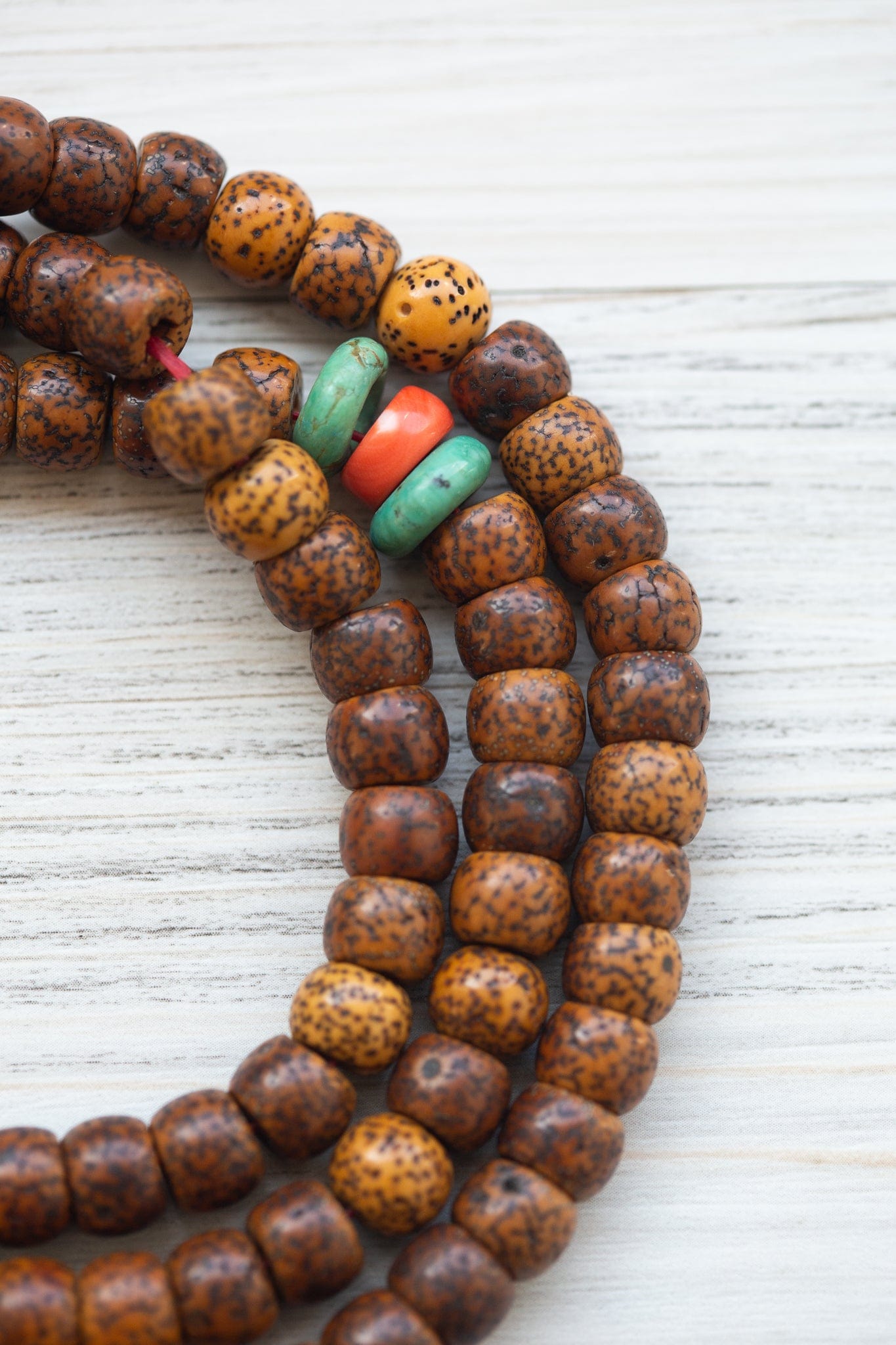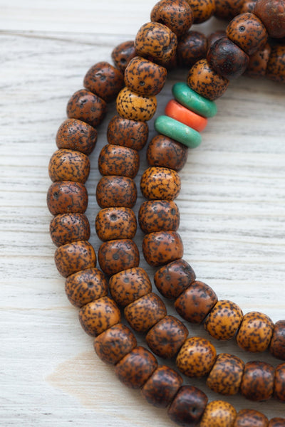 These antique beads are small and smooth from being handled throughout the years. It has an enhanced energy from being passed down through time, creating a more powerful meditation tool. Each bead, aged to an earth-toned patina, carries the energy of the past, offering a powerful connection to your spiritual journey in the present.