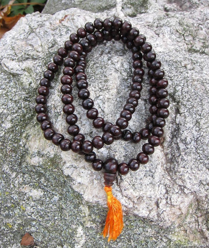 Bodhi seed malas are HUGE and while some love them for counting mantras, some prefer a smaller mala. this redwood mala is a simple 108 bead mala with 9mm beads