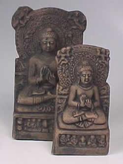 After attaining enlightenment at Bodh Gaya the Buddha went to Sarnath; and it was here that he preached his first sermon in the deer park to set in motion the wheel of the dharma. It is one of the most holy sites as in this place the stream of the Buddhist teaching first flowed. These clay Plaques (free standing) are modeled after the Sarnath Buddhas and are made in Sarnath India.