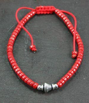 Tiny 3 mm Sherpa coral beads are strung with a silver spacer bead. Adjusts using a beautifully hand tied sliding knot. Handmade by Tibetan artisans.