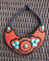 These traditional necklaces are making a comeback in Tibetan communities around the world. Ancient versions of these necklaces had thousands of dollars worth of trade beads, our modern version is all hand made in Nepal with faux coral beads and pressed tourquoise. One of a kind