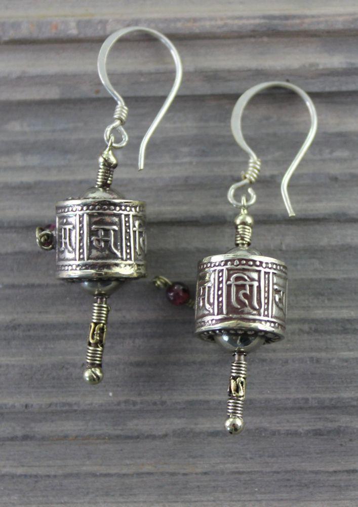 These stunning earrings are handmade in Kathamndu Nepal, the tiny wheels really spin and are filled with a tiny Om Mani scroll.