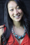 Another amazing necklace from Karma. Turquoise strands link traditional Tibetan beads inlaid with coral and turquoise.