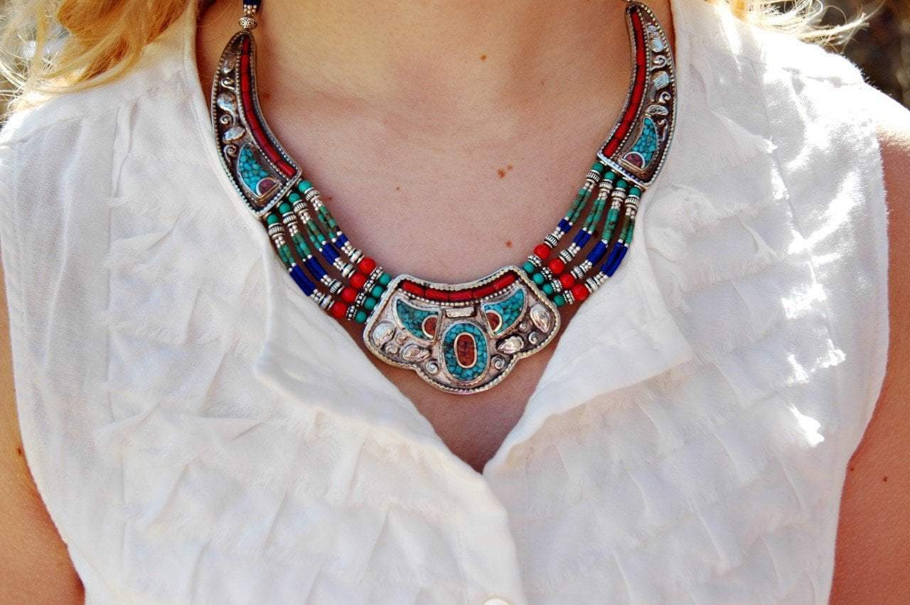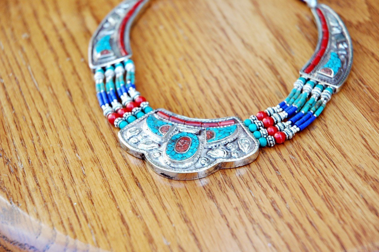 Lapis and Turquoise stone beaded necklace. 18 inches around.