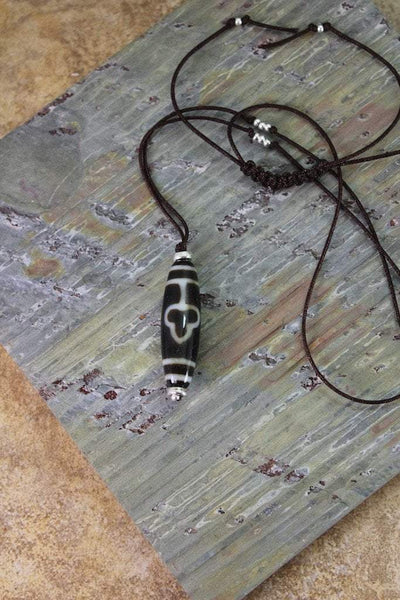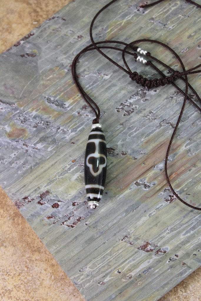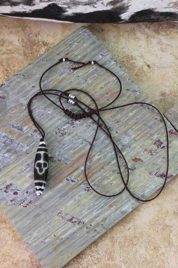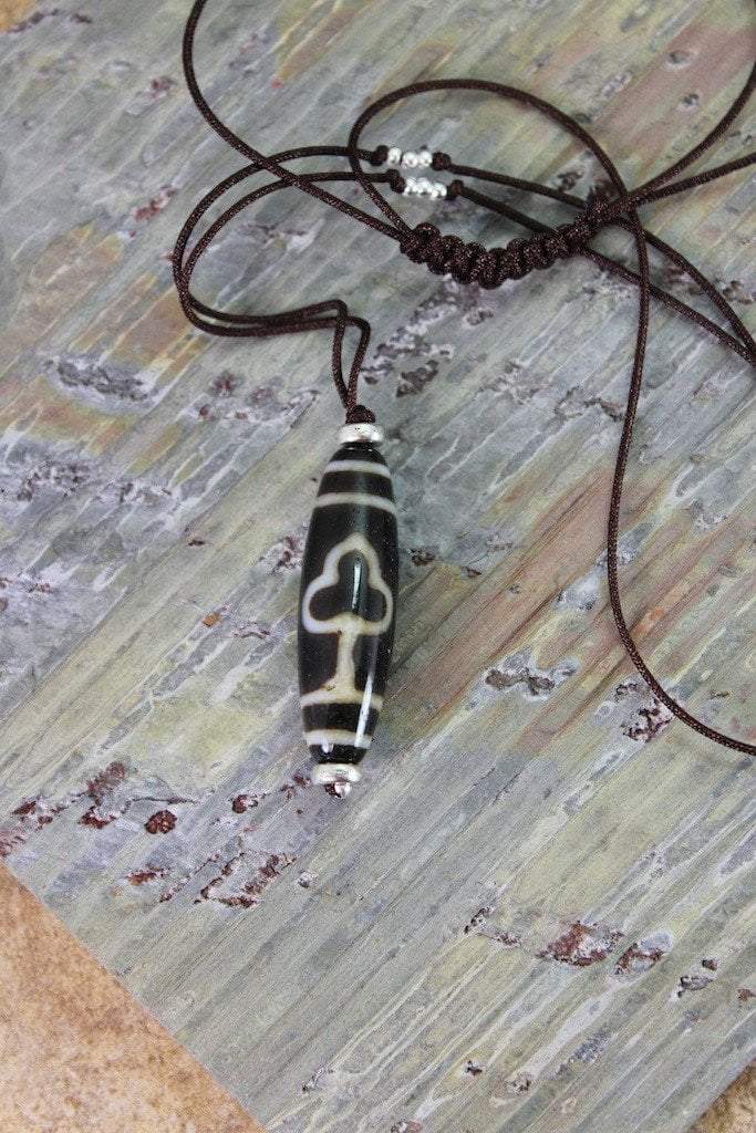 This one of a kind, true agate dzi bead is approximately 1 inch in length. Necklace adjustable up to 35 inches.