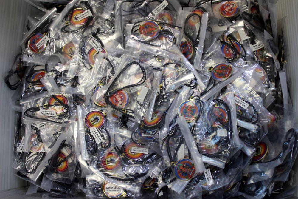 We received these cool brass enamal amulets from Nepal, but the cord attached is too short to wear.
