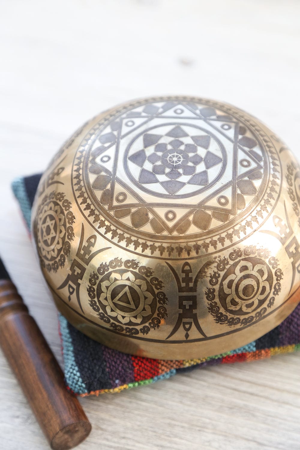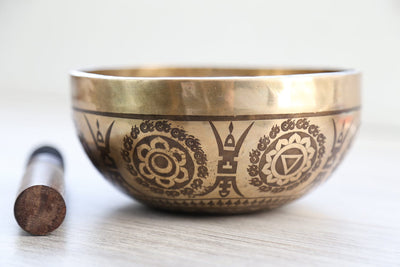 Available in our Universal Truth Singing Bowl Set and Green Tara, Sacred Geometry, & Yoga Chakra Singing Bowl Set!