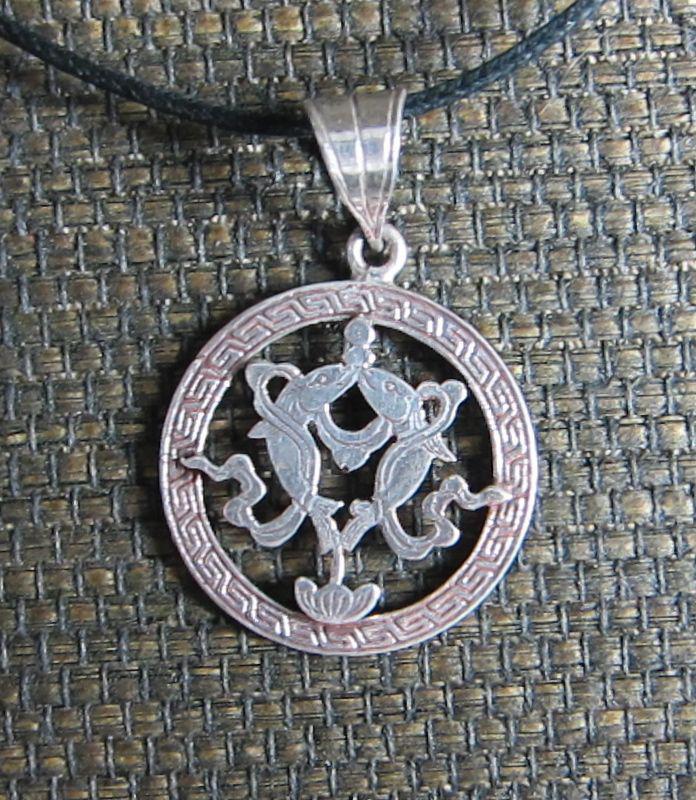 OK, I love fish pendants. This is one of a series of 8 auspicious symbols. Take a look at our Tibetan symbols page for more info on the 8 auspicious symbols. Size:1 inch
