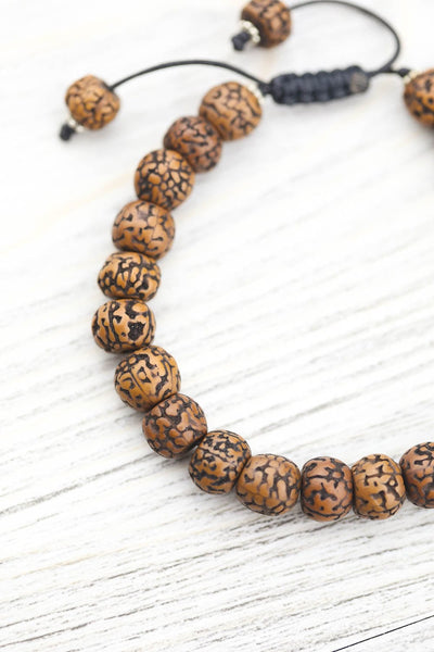These natural and sustainable beads are collected after the seeds fall organically from the tree. They are sanded in a tumbler for comfort before being naturally stained and oiled to achieve their beautiful color. This process allows the authentic seed qualities to really shine.