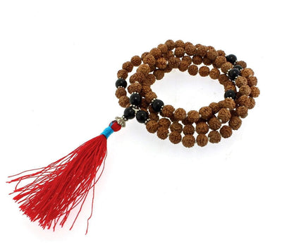 Knotted rudrashka beaded mala with character and depth; Onyx beads representing will power, discipline and reason. Cotton handmade tassel.