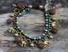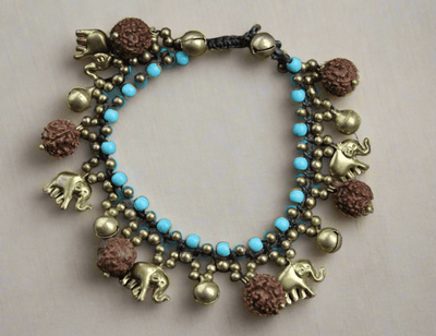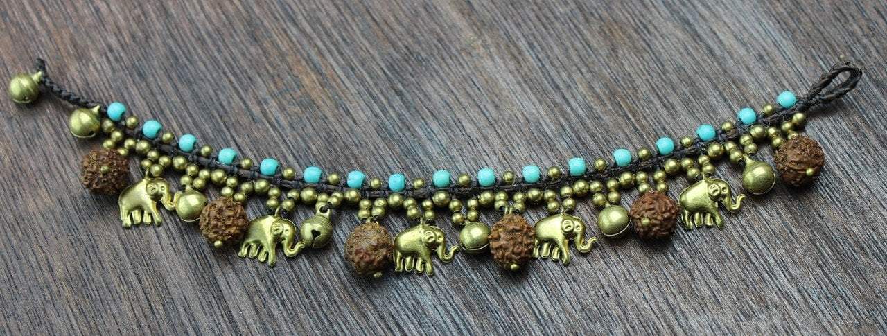 Rudraksha bead and brass elephant charm bracelet on wax chord.