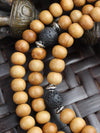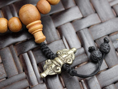 Our new wood mala includes 108 natural wood beads with lava rock spacers that are hand strung on black cord. Wood mala beads are great for counting many different mantras, prostrations, and circumambulations. A brass dorje charm and two small lava rock beads finish the mala. Symbolically, a dorje represents the 'thunderbolt of enlightenment.'