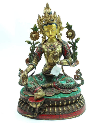 This stunning Green Tara statue is handmade in Kathmandu, Nepal by a 5th generation crafting family.