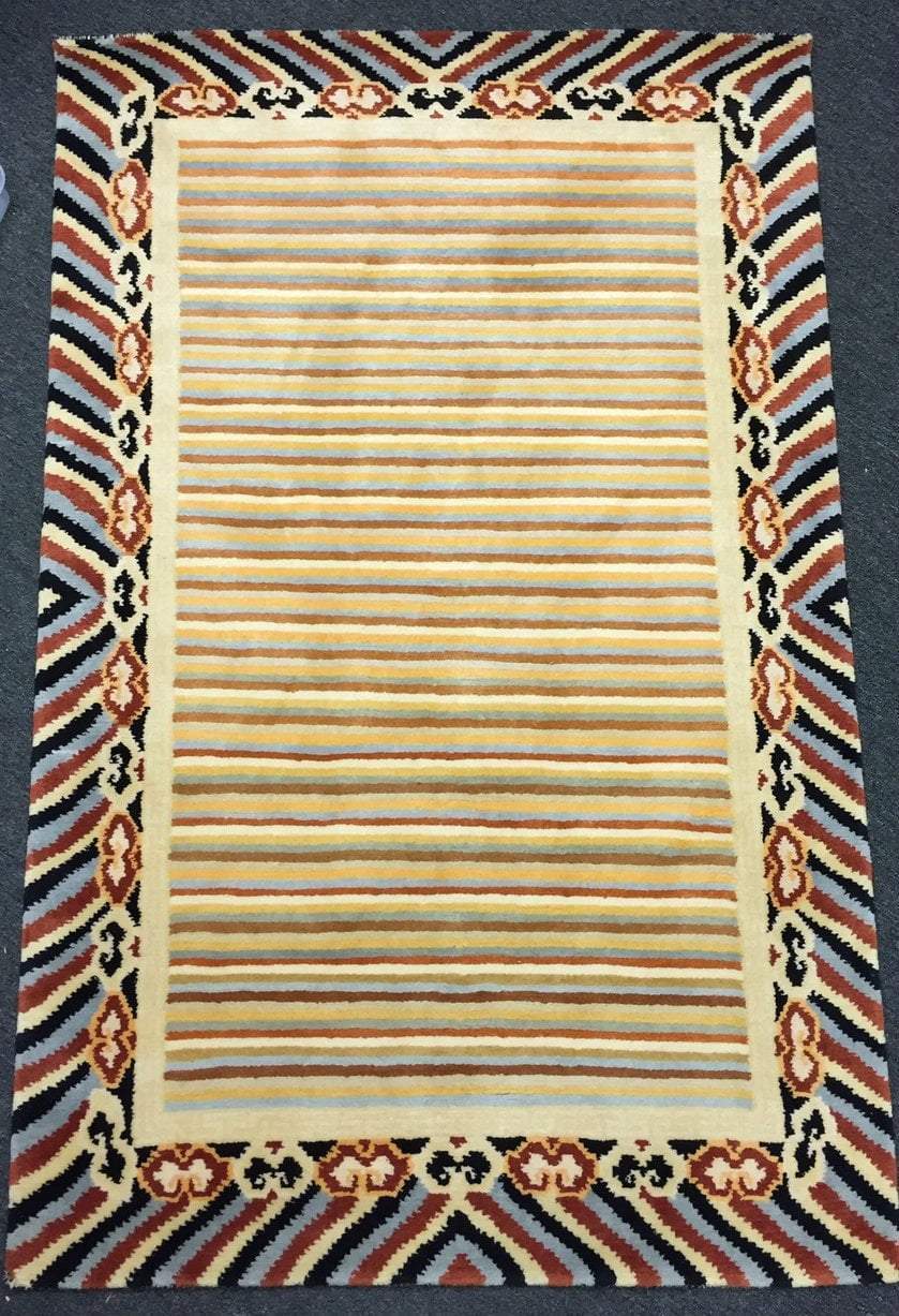 this rug is a traditional pattern and is one of a kind. 60 knots per square inch, Tibetan and new zealand wool mix. 47 by 71 inches (approx 4 by 6 feet)