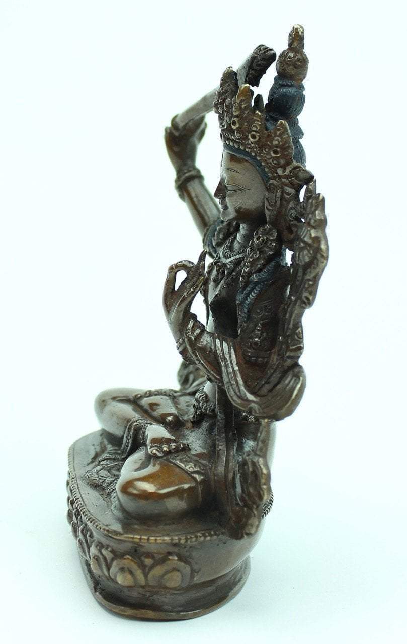 This Green Tara statue is handmade in Kathmandu, Nepal by a 5th generation crafting family.