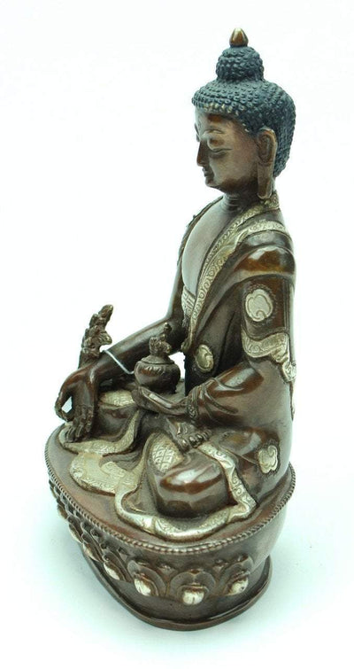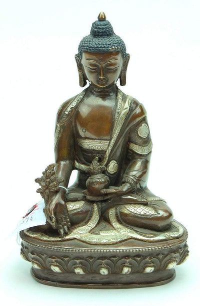 8 Inch Medicine Buddha Bronze and Silver Statue
