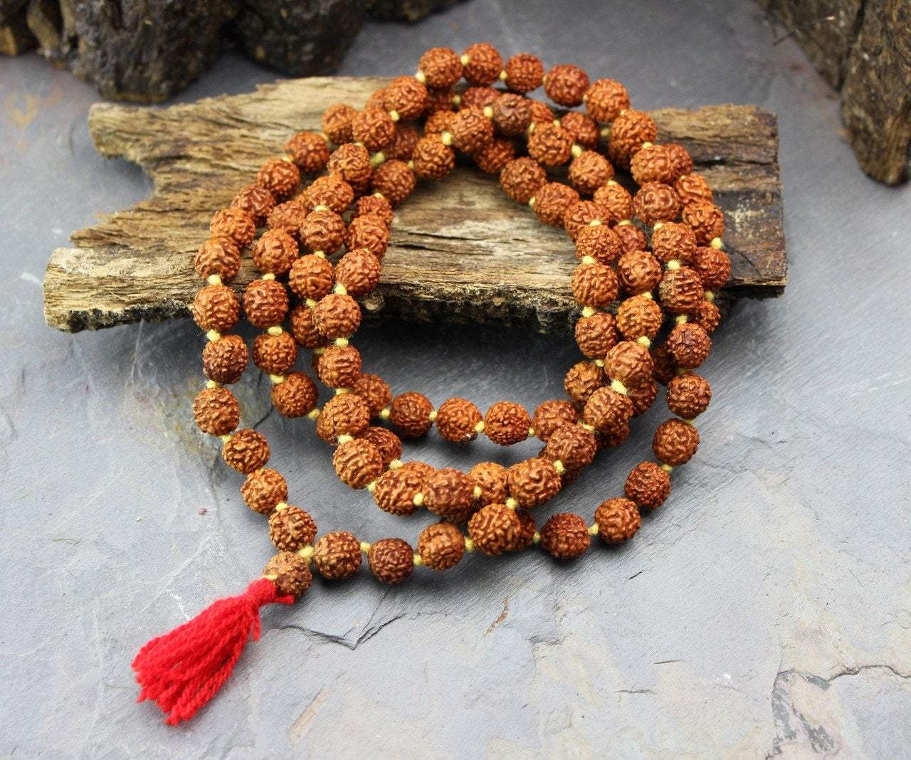 9 mm Rudraksha bead, hand knotted mala. 48 inches around.