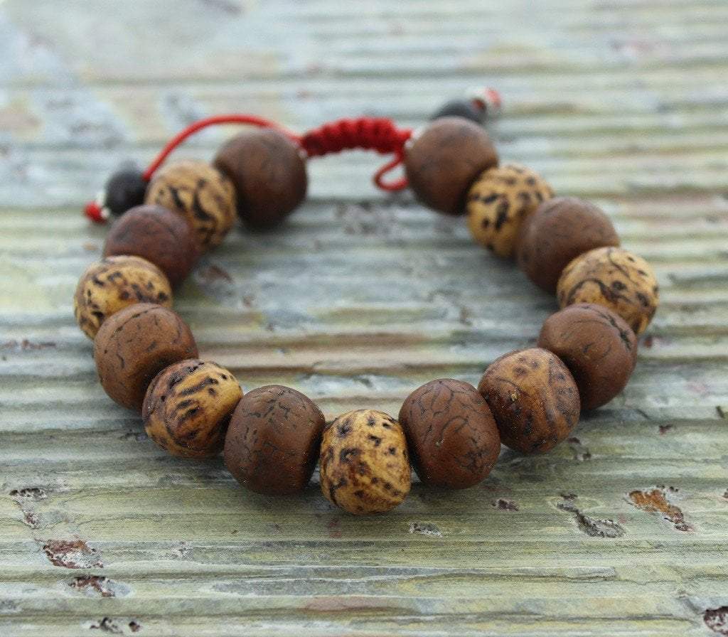 A mix of dark bodhi seed and pheonix eye bodhi seed beads sourced in Kathmandu Nepal