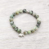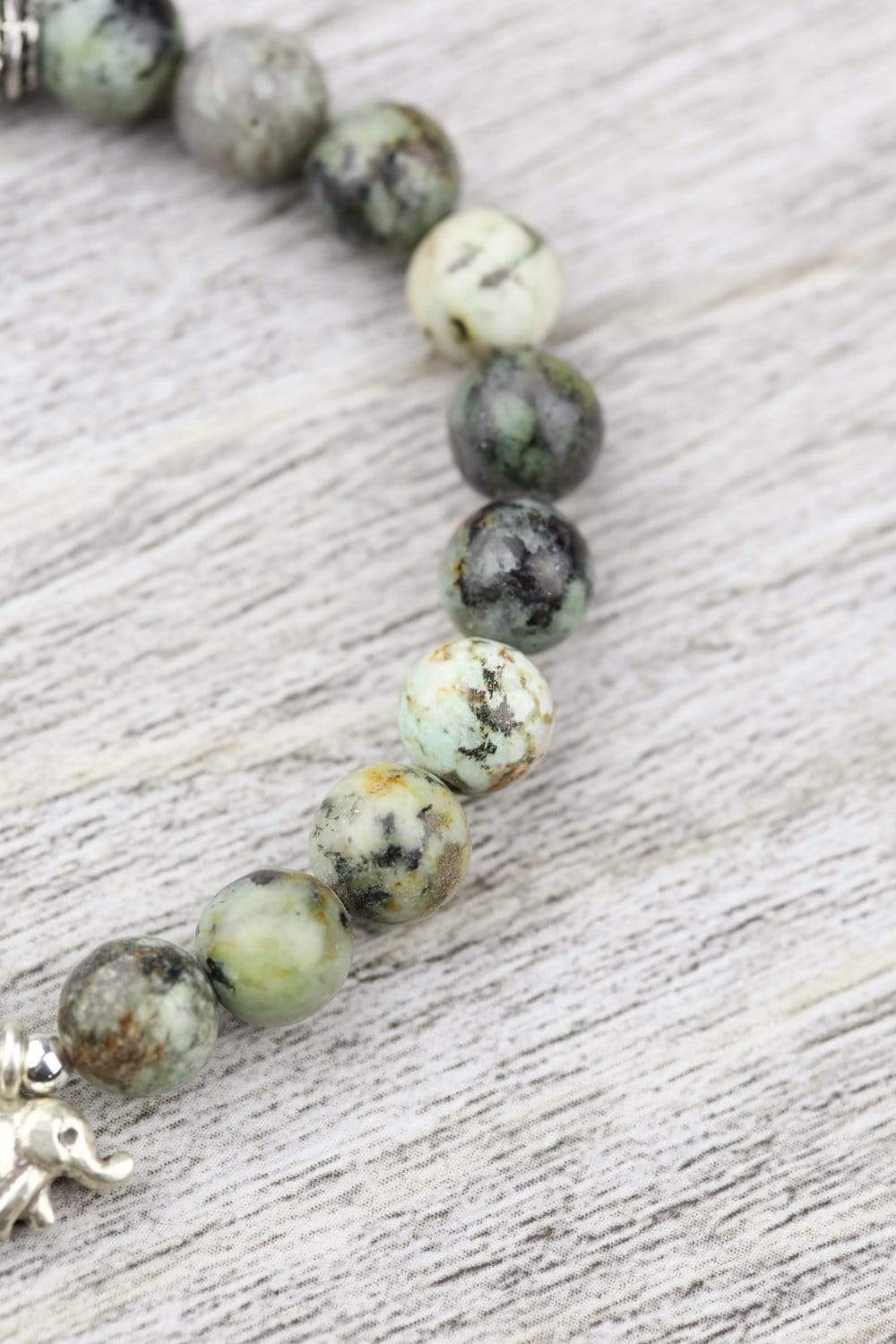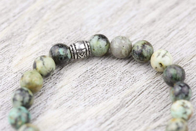 African turquoise is a bead of renewal, evolution, life, soul, and new beginnings. It is also the stone of the Third Eye chakra, the center of wisdom, and the Throat Chakra, your source of expression.