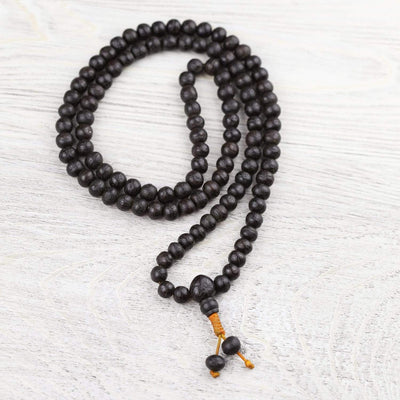 Mala measures approximately 38 inches around. Beads are 10-11mm with some 9mm. Guru bead is about 16mm. Comes with a DharmaShop keepsake bag!