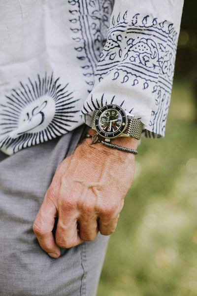 This strong and simple design can be worn on its own as a statement piece, in combination with a watch, or alongside other bracelets to create a contemporary stacked look. If you're interested in a completely handcrafted and stylish accessory, this bracelet is perfect for you.