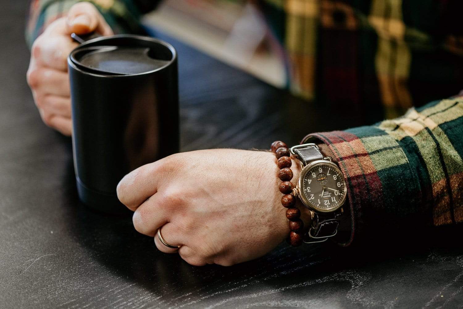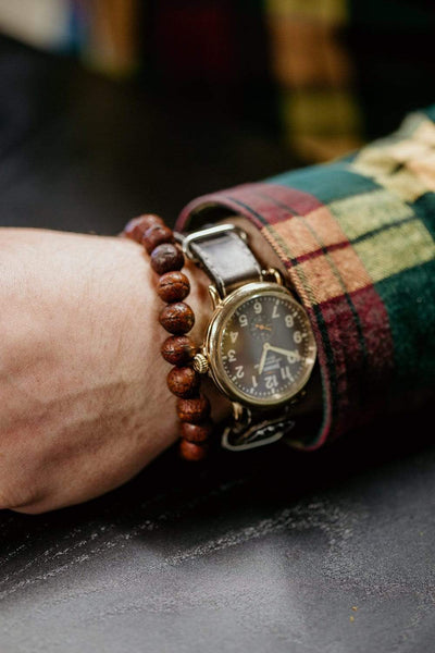 Our jewelry specialist separated the full mala right at the guru bead and followed the exact line of beads when stringing the wrist malas. Just as you follow and count each bead during your meditation, this wrist mala was strung with the same meaningful intention.