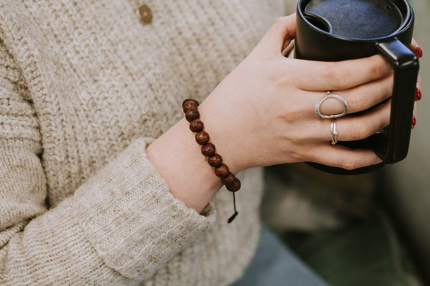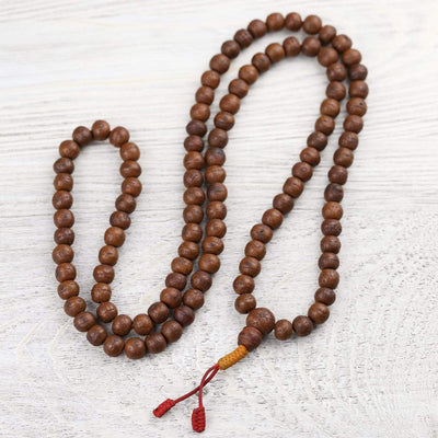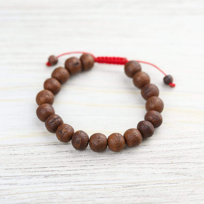 Adjustable wrist mala measures approximately 6.75-7 inches around when fully tightened and opens to about 10 inches. Beads are 10-11mm. Includes two 6mm natural wood toggle beads. Comes with a DharmaShop keepsake bag!