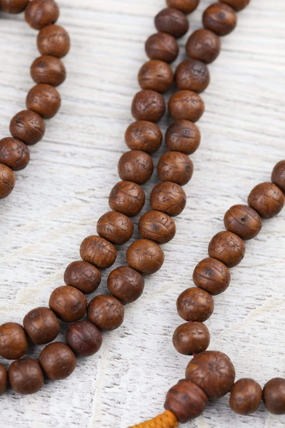On their trip to Nepal in October 2019, DharmaShop owners, Christy and Sander Cohen were walking a kora around the Boudhanath stupa when they saw an individual seller with a variety of bodhi seed malas. As they began talking with the seller, monks from the nearby monastery came by and they discussed the beautiful quality of the beads. We were able to find the same seller and source a handful of truly incredible antique bodhi seed malas from him once again!