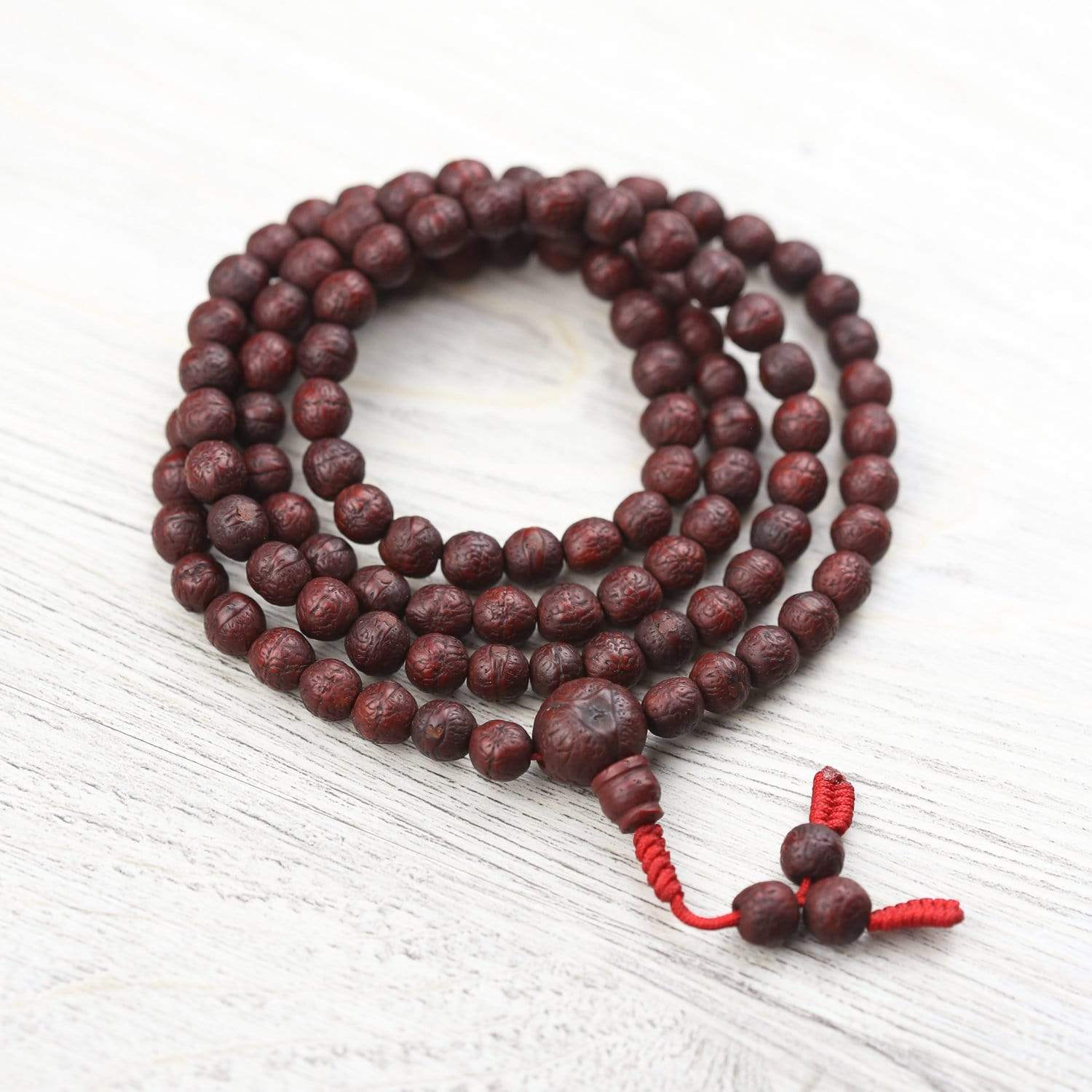 This mala comes from our DharmaShop curated collection. It comes from a small batch of antique bodhi seed malas that we sourced from one of our favorite Tibetan antique mala collectors in the ancient city of Bhaktapur. Its energy and history is as vibrant and powerful as the city from which it came! Each mala incredibly special and features high quality antique bodhi seed beads strung on bold red cord.
